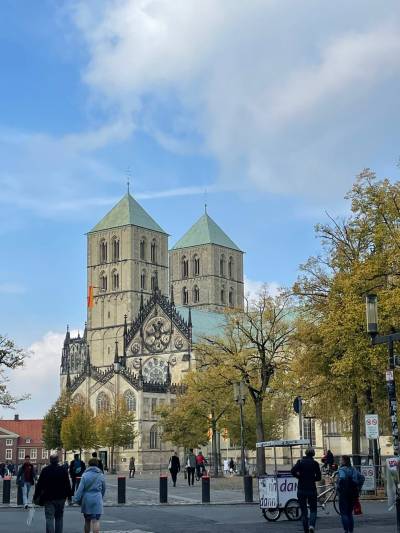 Liebe Mitglieder, Freundinnen und Freunde der Senioren Union Rösrath, uns freut es, das 48 Teilnehmer an der Herbstfahrt nach Münster dabei waren. Zunächst starteten wir bei Nebel schon frühzeitig in Hoffnungstal, Forsbach, Rösrath Bahnhof und Kleineichen. In Münster erwartete uns schönstes Herbstwetter, womit belegt ist, wenn Engel reisen scheint die Sonne😅. Zunächst ging es zum St.-Paulus-Dom mit Führung. Der Grundstein für den Dom wurde 1225 gelegt und ist Bischofssitz. Das Kirchenschiff, angelegt für den Blick auf den Altar beeindruckte ebenso die mechanische Historische Uhr, die immer noch exact geht.